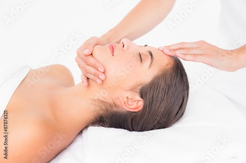Attractive woman receiving head massage at spa center