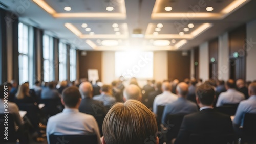 conference, meeting, seminar, audience, room, bright, light, blurry, people, sitting, chair, table, none, event, gathering, indoor, space, ceiling, light, illuminated, panel, wall, window, curtain, drapery, blur, sharpened, business, professional, presentation, lecture, speech, communication, information, exchange, interaction, engagement, community, network, workshop, conference room