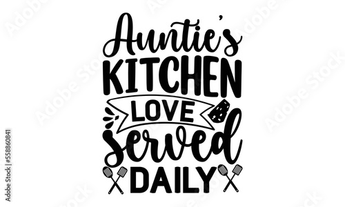 Auntie's kitchen love served daily, cooking T shirt Design, Quotes about Kitchen, Cut Files for Cricut Svg,with hand-lettering and decoration elements, funny cooking vector and EPS 10