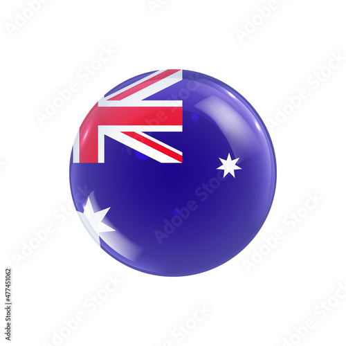 Australia flag icon round badge or button. Glossy sphere vector illustration.
