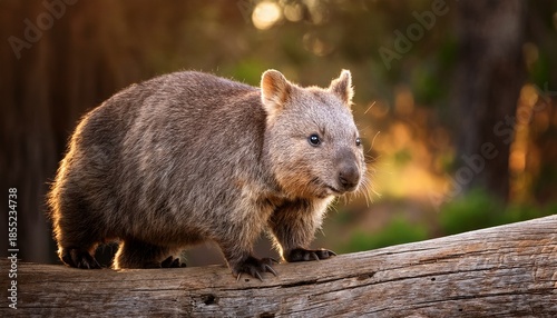 Australian Common Wombat Stands On A Log