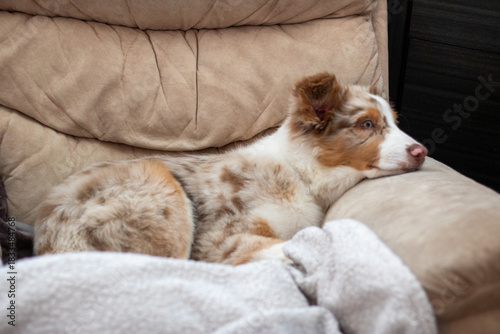 bedtime, calm, couch, adorable, animal, aussie, australian, awake, beige, blanket, border collie, breed, brown, canino, chill, coat, comfort, companion, cosy, cute, dog, domestic, family, friends, fur, home, interior, living room, lounging, mammal, nature, pet, portrait, puppy, purebred, relaxed, resting, room, shepherd, small, sofa, warmth, white