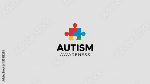 Autism awareness minimalist logo. Colorful puzzle piece, poster with symbol support for autism, generative AI
