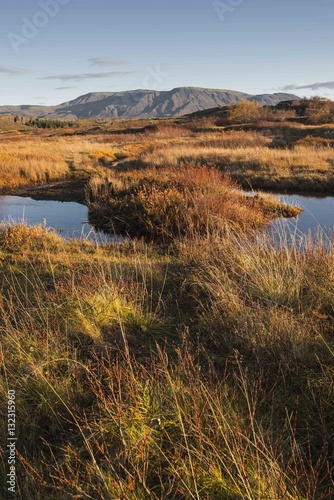 Autumn color with mountains in Thingvellir National Park, Iceland