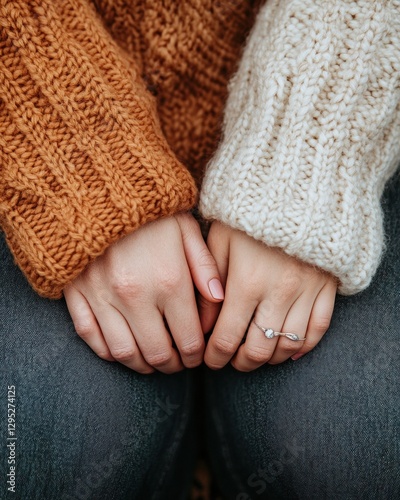 hand, knitted, sweater, intimate, engagement, ring, jewellery, wedding, couple, human relationships, love, connection, soft, texture, autumn, winter, fashion, style, warmth, comfort, closeness, tender, minimalist, romantic, lifestyle, emotion, togetherness, aesthetic, personal, gentle, natural, neutral, cosy, affection, bond, subtile, trendy, elegant