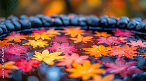 autumn, leaf, water, basin, stone, fall, maple, red, orange, yellow, nature, foliage, season, colourful, vibrant, serene, tranquil, peaceful, beauty, background, garden, duck pond, float, design, texture, pattern, image, photo, picture, illustration, art, colours, mood, scene, landscape, still, life, outdoors, environment, element, detail, closeup, macro, bright, dark, shadow