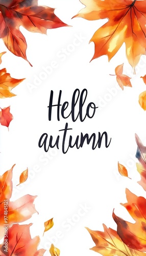 Autumn leaves surround a warm welcome to the season with a cheerful greeting in vibrant colors
