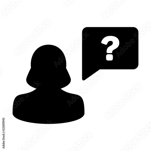 question mark, question, user, person, profile, avatar, chat, speech, help, message, faq, forum, talk, bubble, communication, information, support, client, conversation, discussion, answer, consultation, adviser, speaking, meeting, feedback, speak, exam, test, problem, query, doubt, interview, researching, challenge, topic, ask, solution, client, quiz, vector, illustration, glyphs, pictogram, symbol, woman, female
