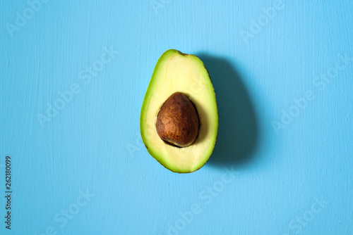 Avocado half on blue background