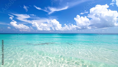 sea, ocean, water, sky, cloud, blue, turquoise, clear, transparent, beach, shore, coastline, wave, ripple, sunlight, sand, ocean floor, horizon, bright, sunny, peaceful, calm, serene, tranquil, beautiful, scenic, seascape, tropical, summer, vacation, holiday, paradise, get-away, pristine, clarity, depth, light, shadow, nature, environment, weather, airy, expansive, open, vista, view, expanse