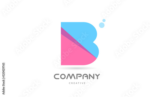 B pink blue geometric alphabet letter logo icon. Creative template for company and business