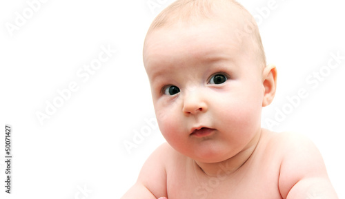 boy, baby, children, infant, newborn, portrait, beautiful, curious, curiosity, children, eye, isolated, little, small, looking, camera, studio, sweet, born, 1, soft, skin, stomach, month, childhood, lying, lie, bed, happy, white, background, bald, face, cute