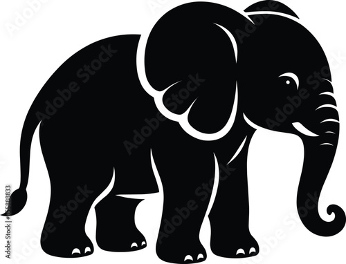 Baby Elephant sitting Silhouette isolated on white background Minimalist elephant vector shape icon