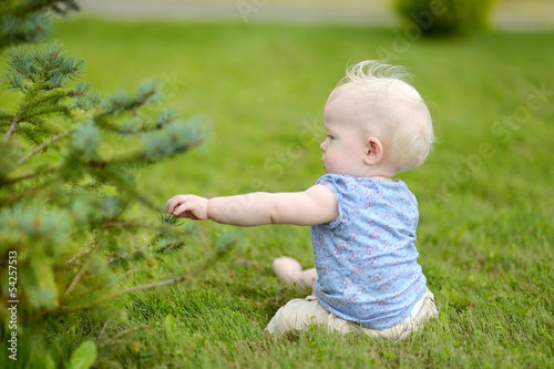 Baby girl sitting on a reen grass