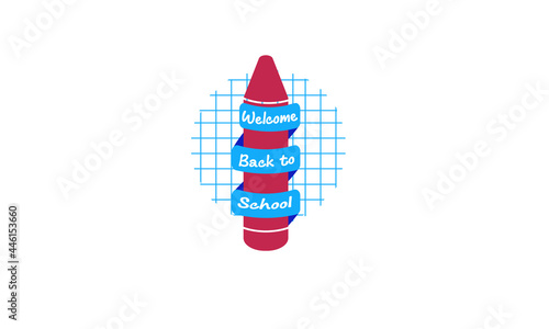 Back to School Vector Illustration with Big Crayon and Ribbons