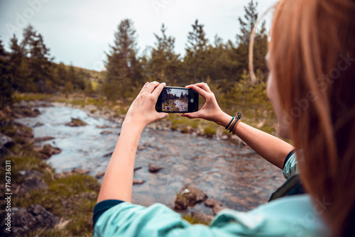 people, woman, backview, caucasian, hiking, forest, smartphone, river, landscape, leisure, scenic, photo, adventure, exploration, nature, wilderness, travel, environment, ecotourism, recreational, natural beauty, serenity, solitude, trekking, backpacking, summer, daytime, casual clothes, hiker, healthy lifestyle, greenery, water, tree, foliage, outdoors, peaceful, relaxation, freedom, walking, enjoyment, exercise, activity, technology, modern, youth, female, lifestyle