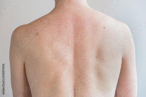 Back with a lot of moles and freckles. Concept of health. Examination by a doctor.