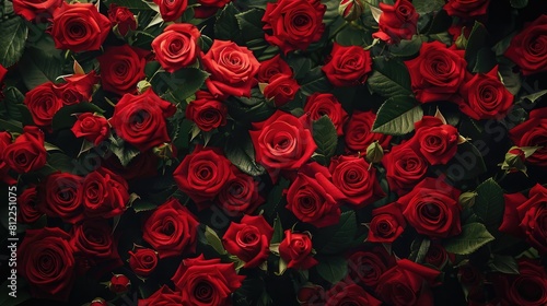 Background featuring bouquets of red roses arranged in a design for Valentine s Day captured from a top down perspective ideal for a banner