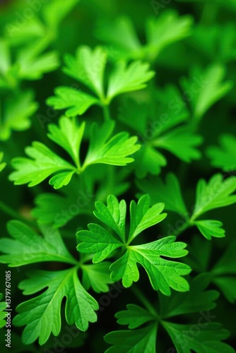 Background of lush green parsley leaves in a close-up shot, showcasing organic cultivation in a vibrant garden setting, green, freshness