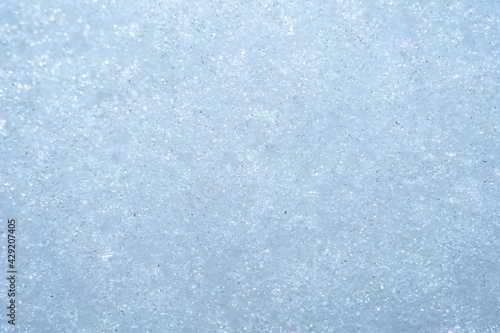 Background with close-up of snow under strong magnification. Slightly melted snow with sharp edges in soft focus.
