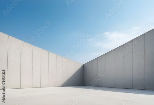 backgrounds ,exposed concrete ,minimalist design, blue sky, empty. Generative AI.
