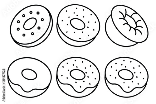 Bagels line art monochrome sketch depicting bagels with soft texture.eps