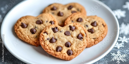 Baking heart-shaped chocolate chip cookies home kitchen dessert recipe cozy environment top view sweet treats