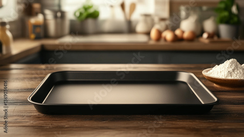 baking, tray, kitchen, countertop, flour, cooking, home, culinary, food preparation, wooden, empty, baking sheet, ingredient, kitchen utensile, rustic, domestic, organised, culinary arts, cook, home cooking, household, dining, pastry, food photography, bright, shadow, light, cosy, inviting, homely, meal, preparation, receipe