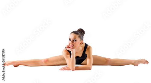 people, art, sport, isolated, gymnastics, 1, exercising, white, caucasian, person, female, gym, elegance, grace, human, activity, young, action, smiling, leg, exercise, occupation, healthy, beauty, girl, stunt, cheerful, performance, acrobat, skill, athlete, woman, stretching, european, acrobatic, shape, training, modern, dance, body suit