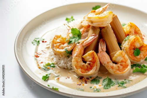 Bamboo Pipe Steamed Shrimp with Creamy Coconut Milk and Chile Flakes