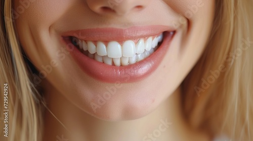 Banner perfect white teeth veneer smile close up, female winner smile, dental care and stomatology, dentistry, copy space
