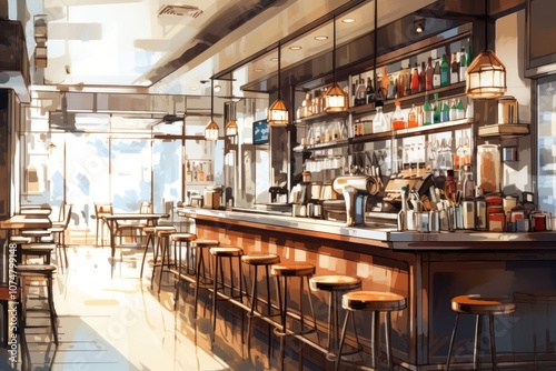 furniture, building, architecture, eatery, bar, illustration, background, painting, paper, cafes, watercolor, chair, white, clean, watercolor, digital, floor, glasses, table, drink, downloadable, interior design, cafes, graphic, bottle, human, lamp, close, electronic, isolated, illuminated, refreshment, cafeteria, hardware, absence, display, indoor, monitor, service, screen, tavern, stool, coffee, meal, seat