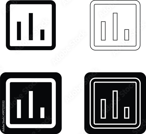 Bar chart icon. Vertical and horizontal bars graph symbol in filled, thin line, outline, and stroke styles. Minimal vector icon set isolated on white background for apps, websites, dashboards, and UI