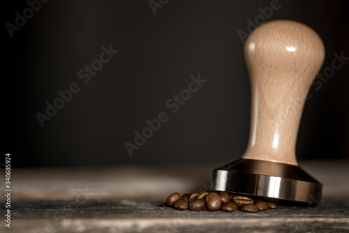 coffee bean, barista, hot drink, steel, espresso, object, tamper, saucer, cafes, cup, white, drink, black, caffeine, table, aroma, brown, whip, bean