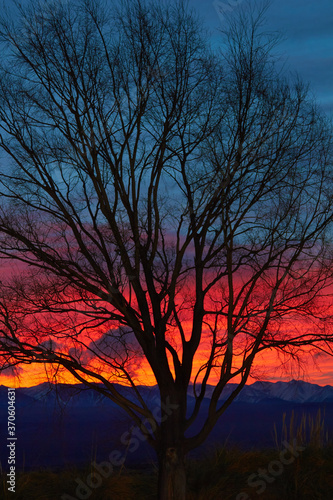 sunset, tree, heaven, winter, sun, sunrise, nature, silhouette, cloud, landscape, evening, red, forest, orange, autumn, evening, morning, blue, fire, colours