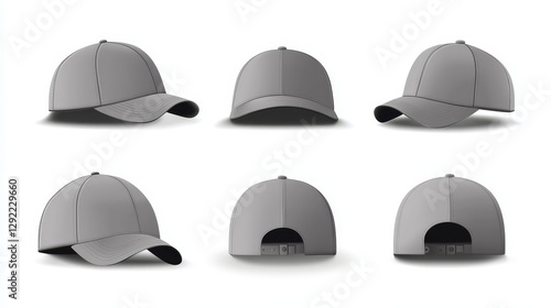 vector, isolated, design, three-dimensional, background, fashion, template, illustration, clothes, front, sport, uniform, headdress, man, headwear, textile, visor, up, mock, apparel, side, realistic, hat, advertise, cotton, empty, baseball, model, element, layout, headgear, cap, view, colours, head, blank, back, graphic, collection, merchandise, grey, set, corporate, grey, wear, ball, footed
