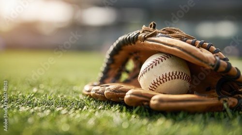 baseball, glove, sport, field, equipment, grass, leather, recreation, game, ball, teamwork, competition, training, practice, athlete, play, closeup, action, exercise, activity, pitch, catcher, outfielder, hit, stadium, season, challenge, winning, losing, uniform, player, hobby, lifestyle, leisure, outdoors, day, summer, sharpened