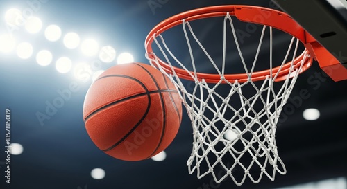 Basketball Going Through Hoop in Professional Arena