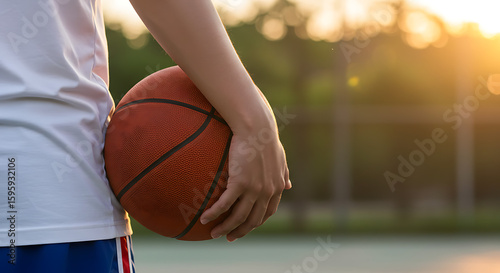 basketball, ball, player, sport, young, person, holding, outdoors, sunset, gold, hours, recreation, active, lifestyle, youth, game, exercise, fitness, leisure, healthy, activity, athlete, competition, training, practice, orange, sunlight, light, summer, season, warm, day, playground, court, short, shirt, arm, hand, skill, hobby, enjoyment, fun, energy, action, movement, evening, background, blurred, side