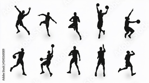 basketball, player, silhouette, action, sport, athlete, jump, dunk, dripped, shoot, volleyball, game, court, training, exercise, movement, sport, team, competition, dynamic, skill, athletic, flexibility, powerful, motion, figure, illustration, design, graphic, black, white, background, image, set, collection, pose, variety, sportsmanship, athlete, activity, teamwork, physical, energetic, sporting