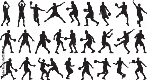 basketball, player, silhouette, action, sport, game, athletic, dynamic, movement, dribbling, shooting, jumping, passing, defense, offence, competition, team, individual, black, white, vector, illustration, graphic, design, silhouette, people, woman, fitness, running, body, tennis, man, run, dance, runner, ball, outline, set, person, football, pose, player, art
