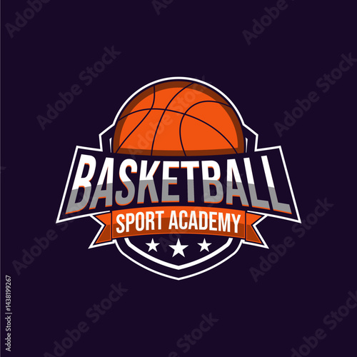 Basketball sports academy logo. Basketball sports academy emblem, design template. Sports badge vector illustration