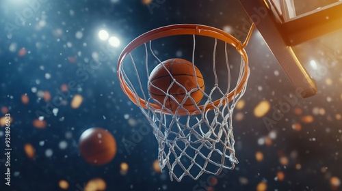 basketball, hoop, net, game, sport, court, play, action, score, swish, ball, orange, round, athlete, athletic, competition, sport, team, victory, success, goal, target, rim, backboard, indoor, lighting, stadium, professional, amateur, fun, energy, passion, skill, strategy, sharpened, dedication, practice, training, motion, dynamic, blurred