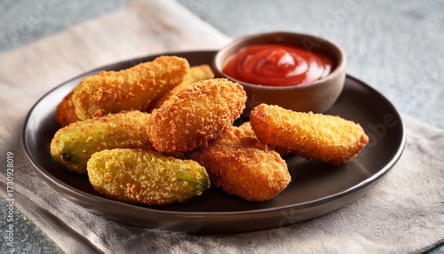 Battered Fried Pickles With Ketchup