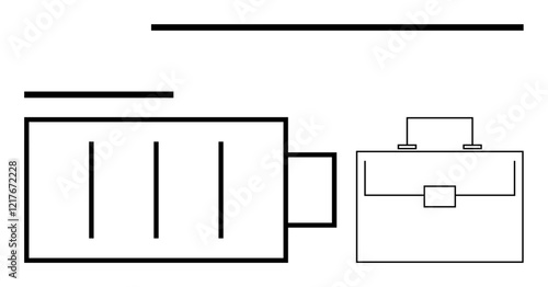 Battery icon beside briefcase outline, symbolizing energy, productivity, business, and work-life balance. Ideal for technology, business planning, workspace setup, motivation sustainability