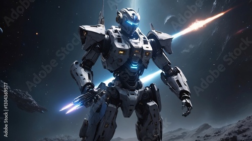 Battle-Damaged Robot Warrior in Space – Sci-Fi Combat Scene