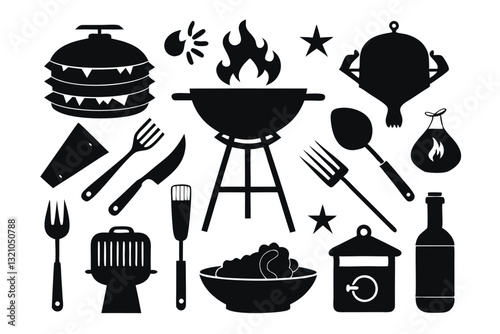 icon, vector, food, kitchen, cooking, set, icon, eatery, cup, silhouette, hot drink, illustration, symbol, grill, chef, bar-b-q, cook, drink, spoon, fork, signs, pot, knife, pan, dish