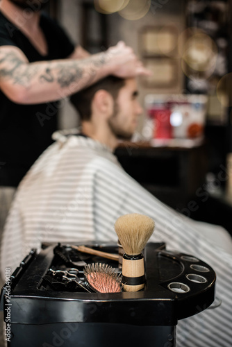 barber, hair, hairstylist, shop, living room, coiffure, client, professional, man, shot, male, young, beauty, comb, stylist, business, white, fashion, care, man, scissors, cup, hairbrush, look
