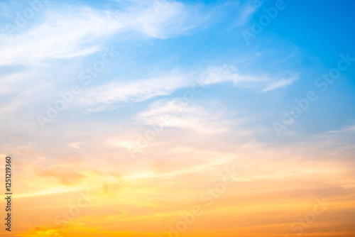 Beautiful , luxury soft gradient orange gold clouds and sunlight on the blue sky perfect for the background, take in evening,Twilight, Large size, high definition landscape photo