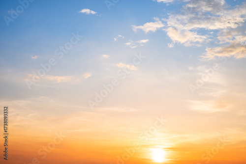 Beautiful , luxury soft gradient orange gold clouds and sunlight on the blue sky perfect for the background, take in evening,Twilight, Large size, high definition landscape photo